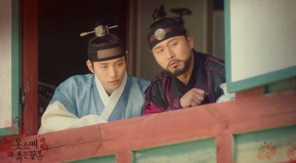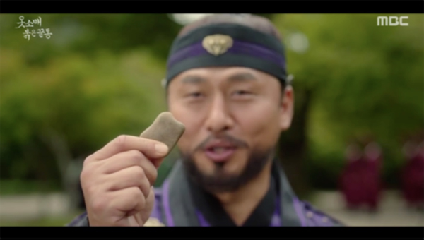 성덕임과 이산이 물수제비를 던지는 내기를 할 때도 돌을 찾을 때 은근히 성덕임과 각을 세우는 강태호의 모습은 미소를 짓게 만든다. 어떻게든 자신이 모시는 이산이 이기게 하려고 애쓰는 모습이 그렇다. 성덕임의 동무들이 수다를 떨며 문관보다 무관이 더 멋지다는 이야기를 훔쳐 듣는 장면에서도 강태호가 주는 웃음을 압권이다. 흐뭇한 표정을 지으면서도 이산의 눈치를 보는 모습이 그것이다. 그 광경은 마치 왕세자와 호위무사가 나오는 <개그콘서트>의 한 코너 같은 느낌이다. “덕임이 넌 문관이 좋아 무관이 좋아?”하고 묻고 성덕임이 문관도 무관도 아니라고 하자 강태호가 “내관?”하고 말하는 대목이 그렇다.