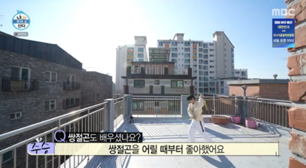 이주승은 아침에 옥상에서 하는 운동만으로도 손발이 오그라드는 광경을 보여줬다. 기안84가 “무도인의 자세”라고 언급한 것처럼, 효도르 운동법에 봉술은 물론이고 쌍절곤까지 꺼내 연습하는 모습을 보여준 것. 어딘지 어린 소년들의 치기 같은 그 모습은 자꾸만 헛스윙과 뒤통수를 때리는 실수로 이어졌지만 고통 따위(?)는 아무렇지도 않다는 듯 사뭇 진지한 모습으로 이주승은 ‘항마력’이 야기하는 웃음을 선사했다.