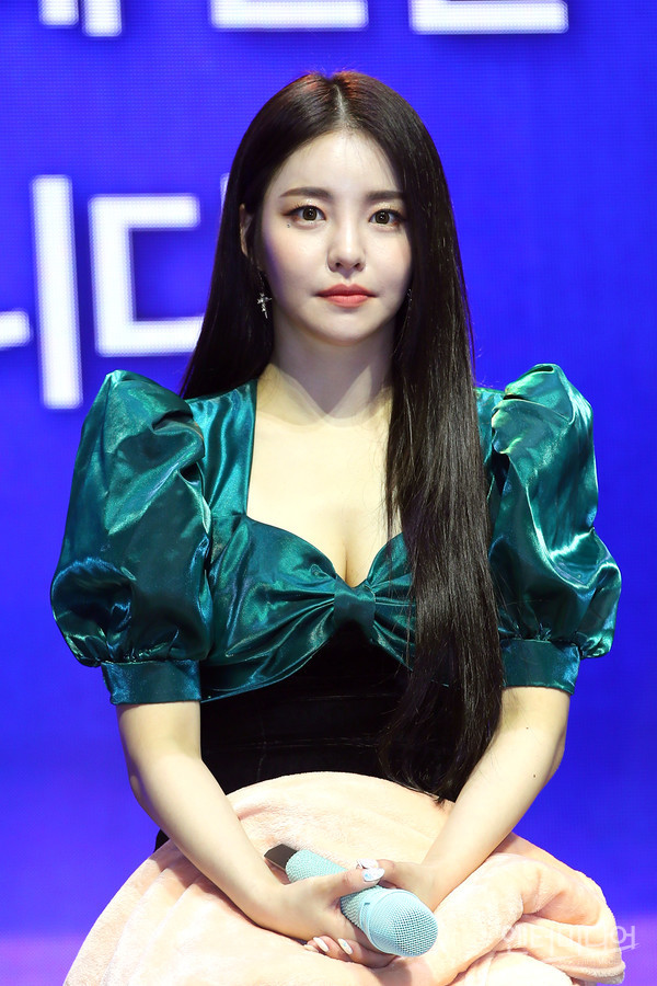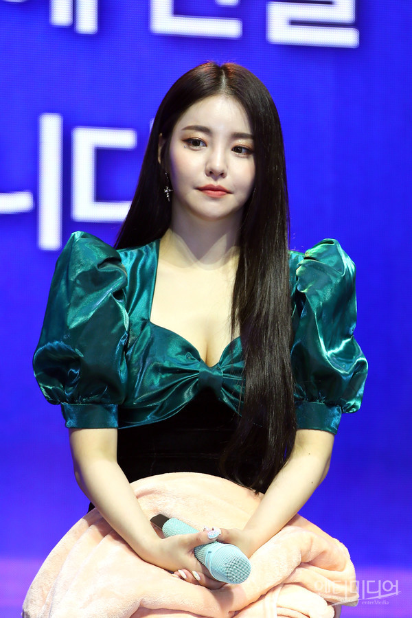 [엔터미디어 김나윤 기자] 브레이브걸스 유정이 23일 오후 서울 양천구 목동 로운아트홀에서 열린 미니 6집 'THANK YOU' 발매 기념 쇼케이스에 참석해 질의에 답하고 있다.