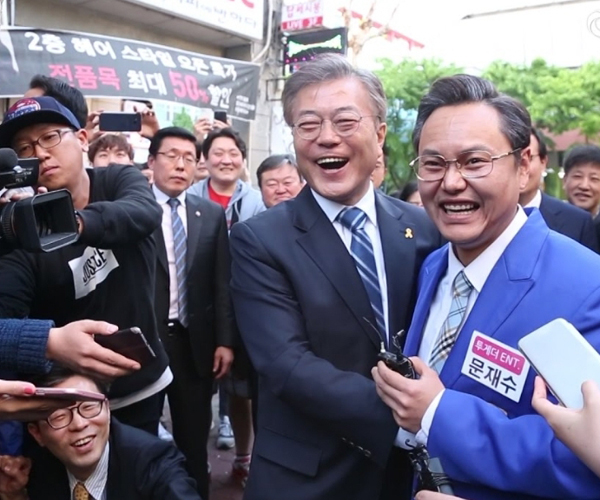 한편 김민교는 지난 2017년 tvN <SNL 코리아 9> 정치 풍자 코너에서 문재인 대통령을 패러디한 문재수역을 맡아 헤어 스타일은 물론 안경과 특유의 말투를 따라하며 관심을 끌었다. 이 같은 활약에 힘입어 김민교는 당시 문재인 대통령 후보와 유세 중에 만나기도 했다.