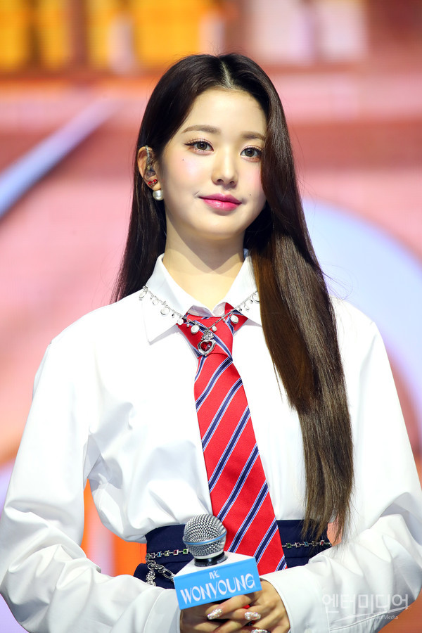[엔터미디어 김나윤 기자] 가수 아이브(IVE) 장원영이 5일 오후 서울시 용산구 블루스퀘어 마스터카드홀에서 열린 두번째 싱글앨범 'LOVEDIVE' 쇼케이스에 참석해 포즈를 취하고 있다.