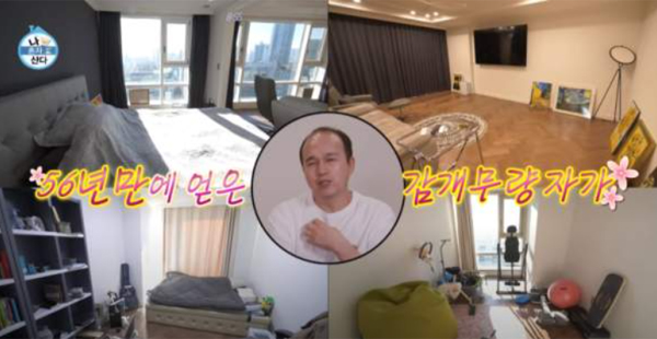 이런 변화된 코드를 가장 잘 확인할 수 있는 부분이 바로 <나혼산>의 대표 메뉴가 된 새 집 마련이다. 최근 들어 거의 매회 무지개회원들의 집 구경을 한다. 타인의 집 구경은 언제나 호기심을 자극하는 소재이기도 하지만 더 이상 성장 서사를 가동하기 힘든 위치에 오른 멤버들의 현재를 담아낼 수 있는 가장 손쉬운 설정이기도 하다. 성산동 빌라에서 시작해 한남동에 수십 억대 자가를 얻기까지 박나래의 성장 서사를 함께 지켜봤고, 마찬가지로 장안동 투룸 빌라에서 시작해 한남동 빌라로 옮긴 화사, 집을 넓혀간 경수진, 과천 주공에서 서초동으로 거처를 옮긴 것은 물론 수십억 대의 건물주가 되기도 한 기안84, 끝으로 애처로움이 캐릭터이기도 했던 김광규가 드디어 60평대 자가를 마련한 느린 성장 서사의 정점까지 지켜봤다.