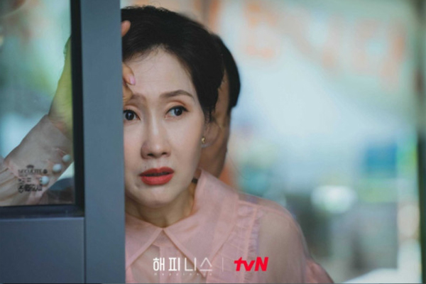 다만 배우 이지현은 기존의 억척스러운 모성의 어머니와는 조금 다른 결의 캐릭터를 몇 년 동안 만들어왔다. 왜 그런 엄마들 있지 않은가? 순둥순둥하고 착해서 오히려 자식 입장에 답답하고 마음 아프고 감싸주고 싶은 엄마들. 2017년 JTBC <더 패키지>의 한복자를 시작으로 그런 엄마의 롤을 만들었던 이 배우는 계속해서 그런 모성의 모습을 변주해낸다. 그리고 <지금부터 우리 학교는>에서는 치킨 배달 오토바이를 타고 아들을 찾아 눈물 그렁그렁한 눈으로 애타게 아들을 불렀다. 거기에 결말은 좀비로 변하기까지.