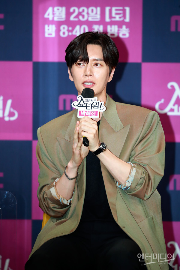 [엔터미디어 김나윤 기자] 배우 박해진이 22일 오후 2시 서울 마포구 상암동 MBC 골든마우스홀에서 열린 MBC 토일드라마 '지금부터 쇼타임' 제작발표회에 참석해 질문에 답하고 있다.