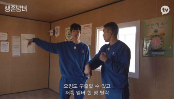 남녀가 팀을 나눠 10일 간 술래에게 잡히지 않고 생존해 최종 더 많은 생존자가 있는 팀이 1억 원의 상금을 나눠 갖는 게임. <생존남녀>는 그래서 남자팀과 여자팀이 다른 쉘터로 나뉘어져 5일 간 생존게임을 치렀다. 그간 많은 것들을 알게 됐다. 매일 보급품이 제공되지만 술래가 돌아다니고 있고 그래서 밖으로 나다니다 잡히면 감옥에 갇히게 된다는 것. 감옥에 갇힌 자들은 쫄쫄 굶어가며 추운 밤을 보내야 함으로써 스스로 자진 퇴소를 선택할 수도 있다는 것. 결국 6일이 지나 남자팀과 여자팀에서 각각 한 사람씩 퇴소를 결정했다.