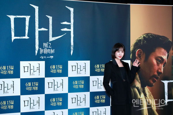 [엔터미디어 김나윤 기자] 배우 서은수(왼쪽부터), 박은빈, 신시아, 조민수, 박훈정 감독, 성유빈, 진구 가 24일 오전 서울 종로구 JW 메리어트 동대문 스퀘어에서 열린 영화 ‘마녀2’ 제작보고회 포토타임에 참석해 포즈를 취하고 있다.