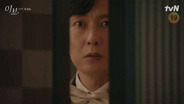 뻔한 구도의 서사인지라 <이브>는 아예 19금을 선택했고 첫 회부터 자극적인 수위의 장면들이 의도적으로 포진되었다. 일부러 강윤겸이 문틈으로 보는 걸 알면서 남편 장진욱(이하율)과 정사를 벌이는 이라엘의 유혹이 그렇고, 이라엘과 그 엄마 김진숙(김정영)이 보는 앞에서 그들의 아빠이자 남편인 이태준이 속옷 바람으로 김정철(정해균)과 수하들에 의해 끔찍한 폭력을 당하는 장면이 그렇다. 한판로(전국환)는 시작부터 제 말을 듣지 않았다며 공익제보를 한 이들을 사냥개가 물어뜯게 만드는 폭력적인 장면과 함께 등장한다.