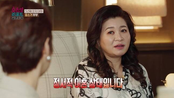 [엔터미디어=정덕현] “이 두 분은 지금 상태는요, 정서적으로는 이혼상태입니다. 법적으로는 이혼을 안하셨고 혼인관계를 유지하고는 계시지만 정서적으로는 이혼상태라고 볼 수가 있어요.” 서로 눈도 마주치지 않고 대화도 하지 않는 부부. 그런 상태가 무려 5년 간 지속됐다고 한다. 무언가 용건이 있을 때는 대화 대신 핸드폰을 들고 문자를 보낸다. MBC <오은영 리포트-결혼 지옥>에 출연한 이른바 ‘음소거 부부’에게 오은영 박사는 냉철하게 ‘정서적 이혼상태’라고 진단을 내렸다.