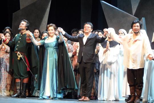 “이런 말들 자꾸 하기 싫은 데 우리 오페라계가 기형적이 됐어요. 저도 외국 팀이 와서 하는 공연들을 싫어하지 않아요. 그러나 무조건 외국 이름만 내 걸고 하는 게 아니라 제대로 된 프로덕션을 데리고 와야죠. 메트로폴리탄 오페라(미국), 로얄오페라 (코벤트가든), 라 스칼라(이탈리아) 팀 등을 데려오라는 거죠. 그런 다음 표를 50만원 받는 것에 대해선 아무 말 안 해요. 저희 오페라단은 3년 후에 그렇게 할 계획을 세우고 있습니다.