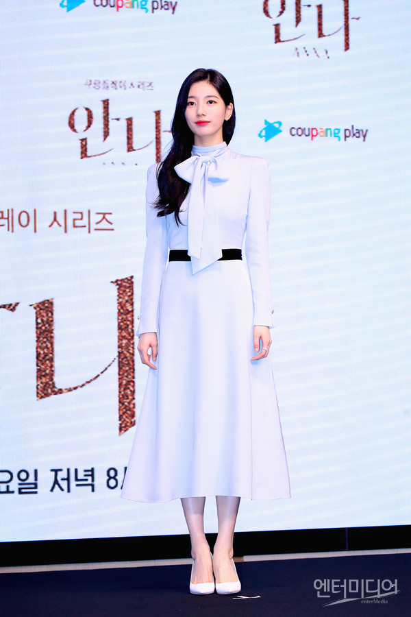 [엔터미디어 김나윤 기자] 배우 수지가 21일 오전 서울 영등포구 여의도 콘래드 서울에서 열린 쿠팡플레이 시리즈 ‘안나’ 제작발표회에 참석해 취재진의 질문에 답하고 있다.