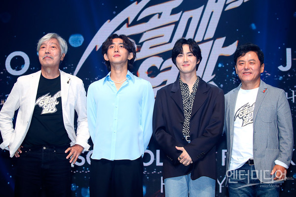 [엔터미디어 김나윤 기자] 가수 송골매 배철수(왼쪽부터), 잔나비 최정훈, 엑소 수호, 구창모가 오후 서울시 마포구 메세나폴리스 신한플레이 스퀘어에서 진행된 송골매 전국투어 콘서트 열망 제작발표회에 참석해 포토타임을 갖고 있다.