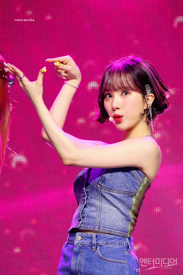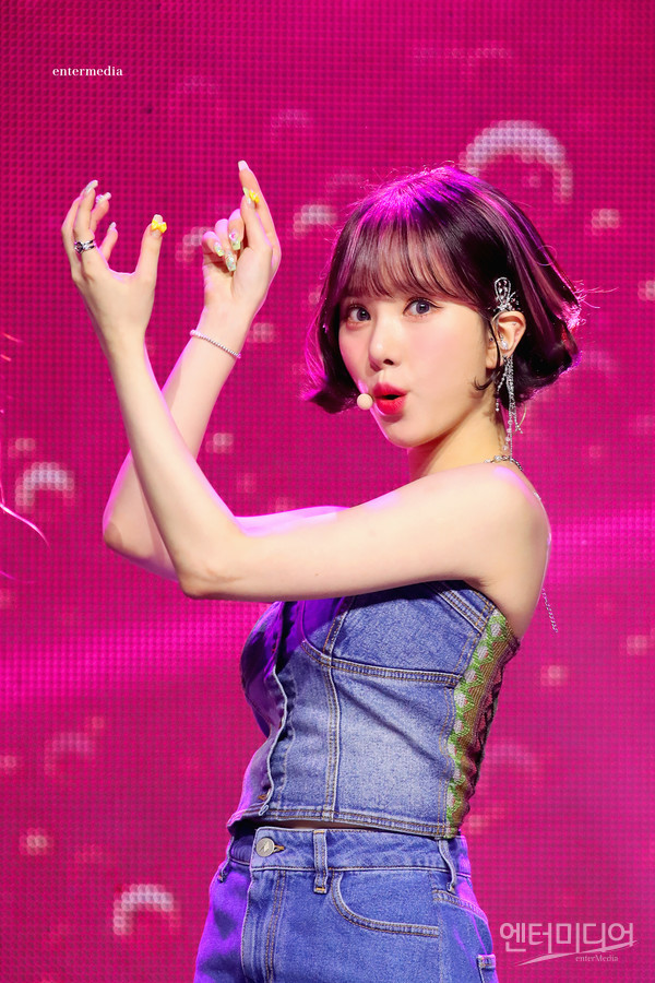 [엔터미디어 김나윤 기자] 가수 비비지(VIVIZ) 은하가 6일 오후 서울 광장동 예스24라이브홀에서 열린 두 번째 미니앨범 ‘Summer Vibe(서머 바이브)’ - ‘LOVEADE(러브에이드)’ 발매 기념 쇼케이스에 참석해 타이틀곡 'LOVEADE' 무대를 선보이고 있다.