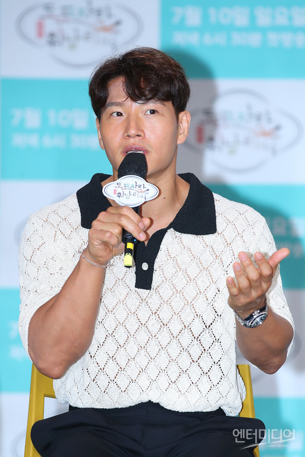 [엔터미디어 김나윤 기자] 방송인 김종국이 7일 오후 상암동 MBC 골든마우스홀에서 열린 예능프로그램 '도포자락 휘날리며'의 제작발표회에 참석해 취재진의 질문에 답하고 있다.