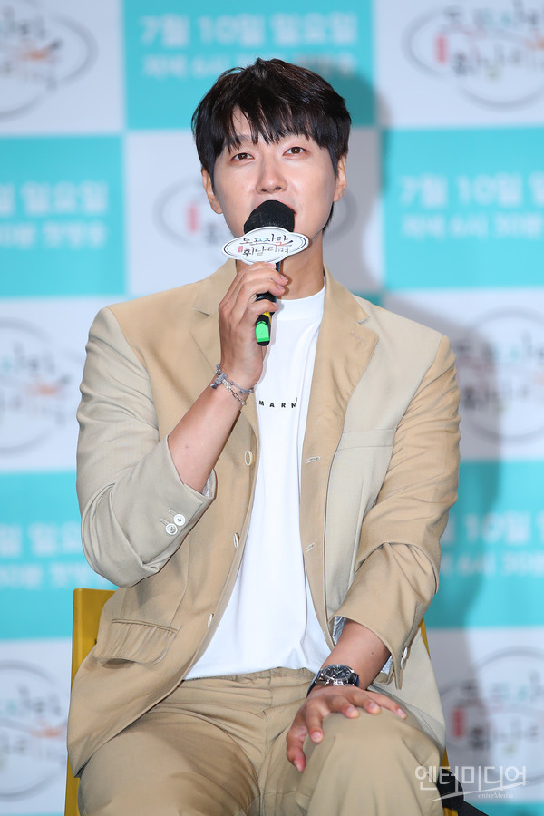 [엔터미디어 김나윤 기자] 배우 지현우가 7일 오후 상암동 MBC 골든마우스홀에서 열린 예능프로그램 '도포자락 휘날리며'의 제작발표회에 참석해 취재진의 질문에 답하고 있다.