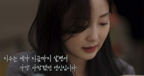“지수는 제가 지금까지 살면서 가장 사랑했던 연인입니다. 사랑이라는 것이 얼마나 행복한지 또 얼마나 아플 수 있는지 알려준 고마운 사람입니다. 지수는 늘 사랑스럽고 귀여운 표정으로 주변 사람을 기분 좋게 만들어주고 가끔은 파워풀한 힙합 춤을 춰서 반전의 매력을 주기도 합니다. 지수가 가끔 나 얼마큼 사랑해 라는 질문을 할 때가 있는데 창의적이고 센스 있는 답변을 미리 준비해 두면 좋을 것 같습니다.”