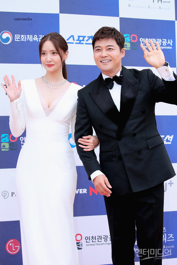 [엔터미디어 김나윤 기자] 배우 윤아와 방송인 전현무가 19일 오후 인천 영종도 파라다이스시티 크로마에서 열린 '제1회 청룡시리즈어워즈 레드카펫에 참석해 포즈를 취하고 있다.