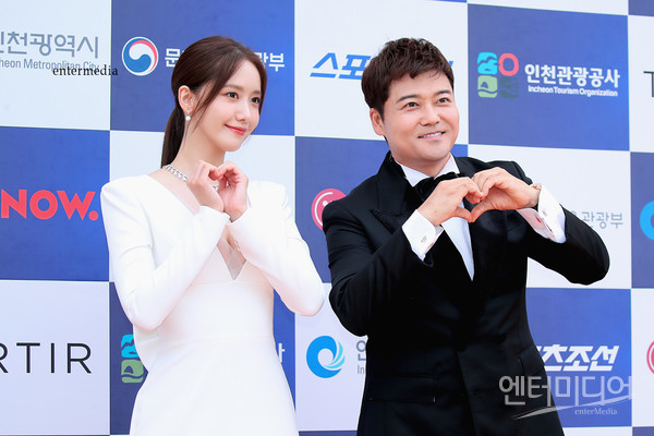 [엔터미디어 김나윤 기자] 배우 윤아와 방송인 전현무가 19일 오후 인천 영종도 파라다이스시티 크로마에서 열린 '제1회 청룡시리즈어워즈 레드카펫에 참석해 포즈를 취하고 있다.