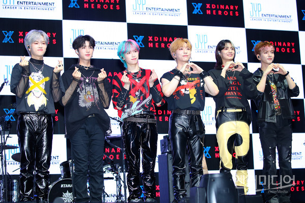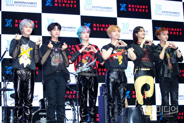 [엔터미디어 김나윤 기자] 밴드 엑스디너리 히어로즈(Xdinary Heroes, XH)가 20일 오후 서울 용산구 한남동 블루스퀘어에서 진행된 첫 번째 미니 앨범 '헬로, 월드!(Hello, world!)' 발매 기념 쇼케이스에 참석해 포즈를 취하고 있다.