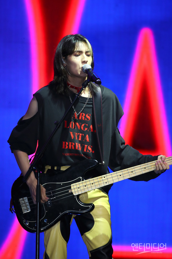 [엔터미디어 김나윤 기자] 밴드 엑스디너리 히어로즈(Xdinary Heroes, XH) 주연이 20일 오후 서울 용산구 한남동 블루스퀘어에서 진행된 첫 번째 미니 앨범 '헬로, 월드!(Hello, world!)' 발매 기념 쇼케이스에 참석해 무대를 갖고 있다.