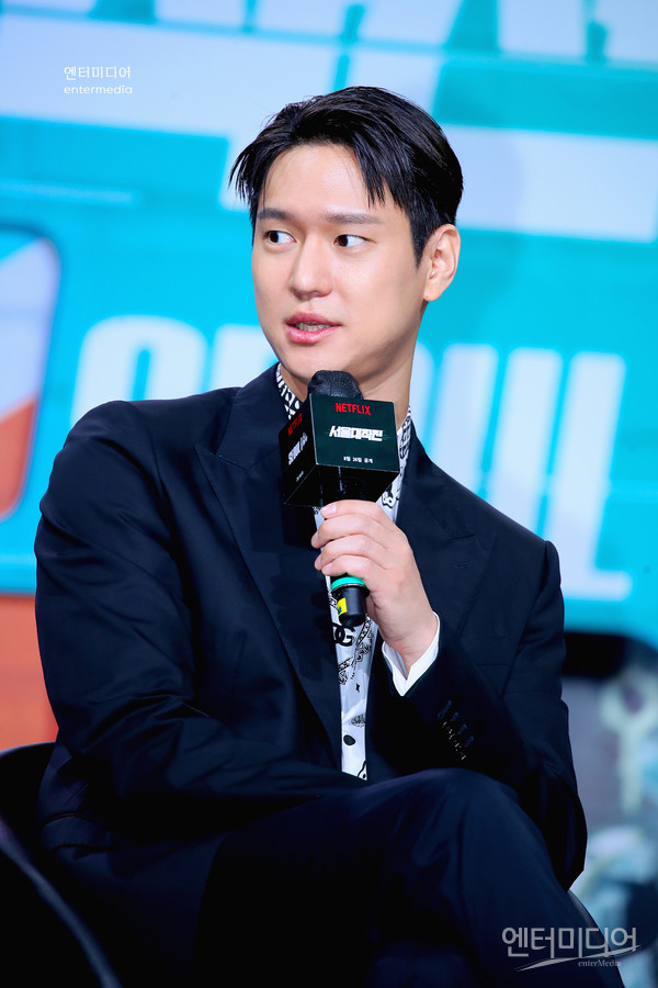 [엔터미디어 김나윤 기자] 배우 고경표가 23일 오전 서울 강남구 그랜드 인터컨티넨탈 서울 파르나스에서 열린 넷플리스의 영화 ‘서울대작전’ 제작보고회에 참석해 취재진의 질문에 답하고 있다.