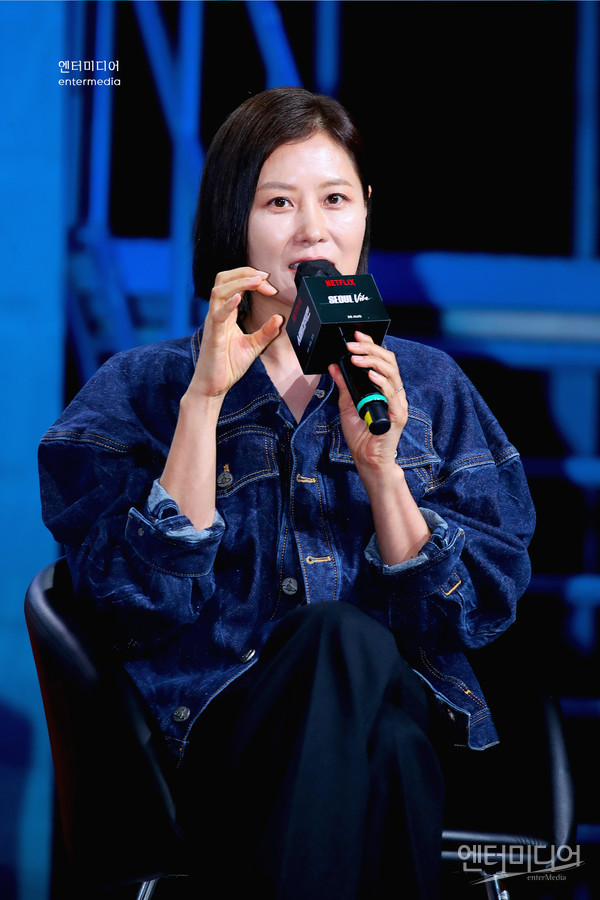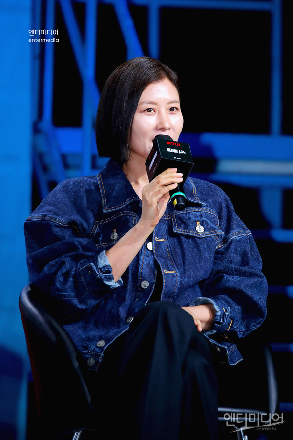 [엔터미디어 김나윤 기자] 배우 문소리가 23일 오전 서울 강남구 그랜드 인터컨티넨탈 서울 파르나스에서 열린 넷플리스의 영화 ‘서울대작전’ 제작보고회에 참석해 취재진의 질문에 답하고 있다.