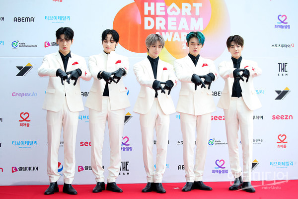 [엔터미디어 김나윤 기자] 가수 TXT:투바투(TOMORROW X TOGETHER)가 25일 오후 서울 송파구 잠실종합운동장 학생체육관에서 진행된 '2022 K 글로벌 하트 드림 어워즈' (2022 K GLOBAL HEART DREAM AWARDS) 레드카펫 행사에 참석해 포즈를 취하고 있다.