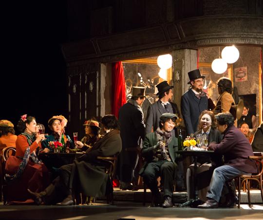 프랑스의 로익 티에노(무대 디자인)는 어두운 다락방(1막)과 화려한 까페 모뮈스(2막)의 거리가 명확히 대비되게 디자인 했으며 자연스럽게 열리고 닫히는 영민한 무대 전환 시간에는 여지없이 객석에서 감탄이 터져 나왔다. 다소 어둡게 무대를 비춘 니콜라 마리의 조명디자인에 대해서는 의견이 나뉠 수 있지만 가난한 다락방의 운치를 충분히 살려냈다. 캄캄한 방에서 울려 퍼진 ‘그대의 찬 손’ 아리아 또한 조명이 합세해 작품 흐름을 집중도 있게 이끌고 갔다.