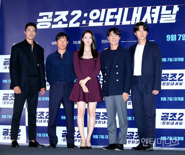 [엔터미디어 김나윤 기자] 배우 다니엘 헤니(왼쪽부터), 유해진, 임윤아, 진선규, 현빈이 30일 오후 서울 용산구 CGV용산아이파크몰에서 열린 영화 '공조2:인터내셔날'(감독 이석훈) 언론시사회에 참석해 포토타임을 갖고 있다.