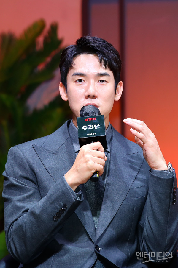 [엔터미디어 김나윤 기자] 배우 유연석이 7일 오전 서울 강남구 조선팰리스 서울강남에서 열린 넷플릭스 시리즈 ‘수리남’ 제작발표회에 참석해 취재진의 질문에 답하고 있다.