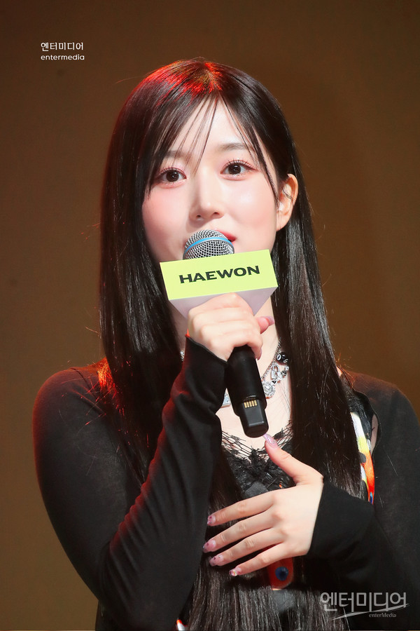 [엔터미디어 김나윤 기자] 가수 NMIXX(엔믹스) 해원 19일 오후 서울 광진구 예스24 라이브홀에서 열린 두번째 싱글 'ENTWURF'(엔트워프)'와 타이틀곡 'DICE'(다이스) 발매기념 미디어 쇼케이스에 참석해 포즈를 취하고 있다.