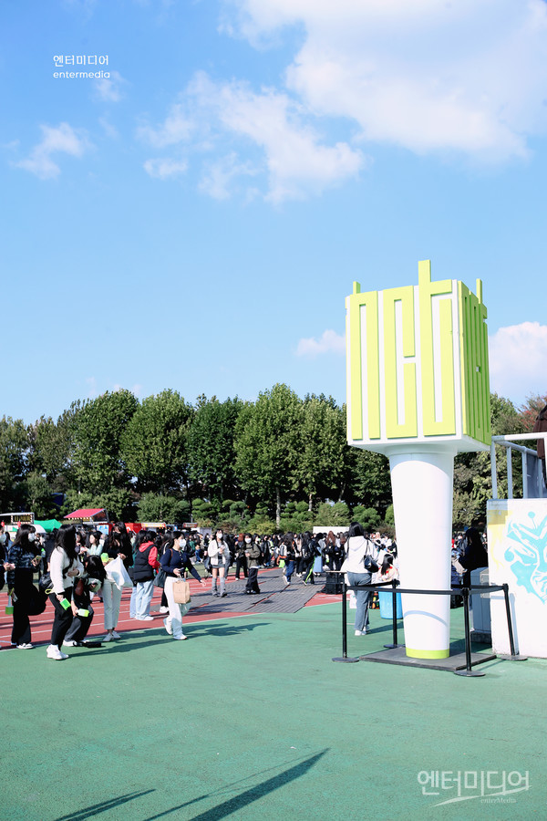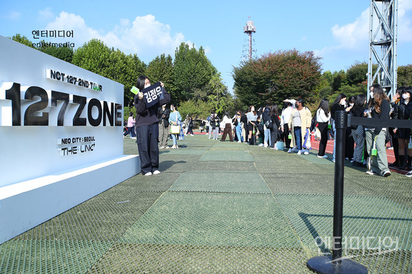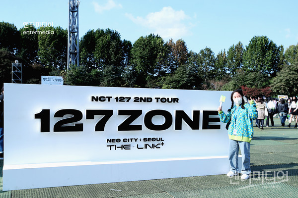 공연장 내 127ZONE 조형물 앞에서 팬들이 기념 촬영을 하고 있다.