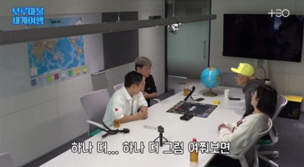 또 사전 미팅처럼 처음 모인 자리에서 자신들이 원하는 여행지들을 적어 넣은 부루마불판이 완성되자 즉석에서 주사위를 던져 첫 여행지를 정하는 신속한 진행(?)에 세 크리에이터들은 또 소름이 돋는다. 이런 식의 진행은 이미 김태호 PD가 MBC 시절, <무한도전>, <놀면 뭐하니?>에서 시도했던 방식이긴 하지만 달라진 점은 역시 유튜브가 갖는 자유로움이 묻어난다는 점이다.