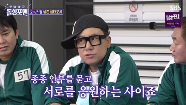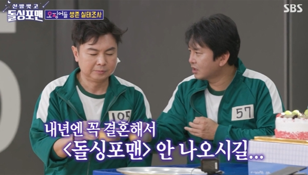지난해 말에는 근 한 달 이상 <미우새>와 <돌싱포맨>은 김준호와 김지민의 공개 연애를 중계하는 데 포커스를 맞췄고, 과거 <해피투게더>나 <놀러와>의 후반기처럼 게스트에 의존하는 에피소드 나열식 토크쇼의 성격이 더 짙어졌다. 지난 3일에는 70회 방영을 기념해 판을 키워 1년 만에 다시 모인 돌싱남들의 모임인 ‘오징어들 게임’으로 판을 확장했다. 그러나 역시 10여 명의 돌싱 중년남들이 모여 연애 이야기, 퀴즈가 계속되었고 삼혼을 한 엄영수는 특히 “이혼에도 스토리텔링이 필요하다”는 등의 희화화를 통해 분위기를 띄웠다.