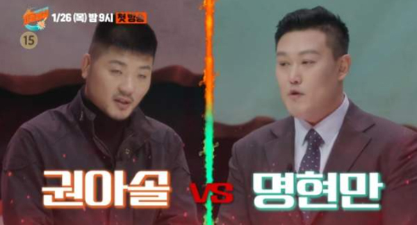 이런 분위기를 예능에서도 이어받았다. 연초부터 JTBC는 전현무, 홍진경, 이찬원, 오나라 등 호화 출연진이 자리한 6부작 파일럿 <안방판사>를, SBS는 4년 만에 돌아온 강호동의 복귀작 <이상한나라의 지옥법정>을 나란히 선보였다. 두 프로그램은 데칼코마니마냥 무척 비슷한 모양새를 띈다. <안방판사>는 과거 시사예능의 전성시대를 열었던 <썰전>과 같은 구도로 스튜디오를 구성했고, <지옥법정>은 실제로 시사교양국에서 만들었다. <안방판사>는 4명의 연예인과 5명의 현직 변호사가 모두 변호사라는 동등한 신분으로 팀을 나눠 변론을 펼치고, <지옥법정>은 강호동이 참관인이란 이름으로 진행을 하고, 은지원, 지상렬 등 노련한 6명의 예능 선수들이 3:3으로 팀을 나눠 변론을 맡는다.
