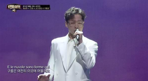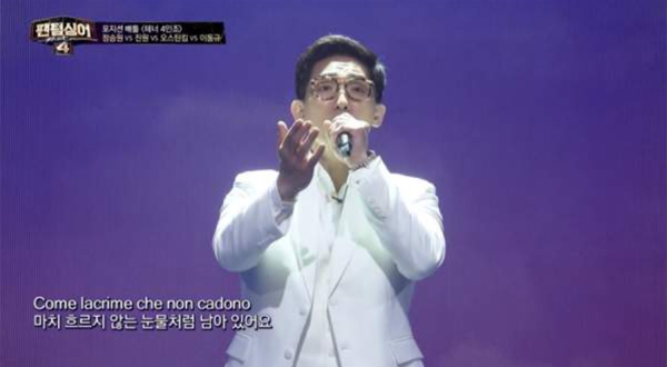 이미 무대를 하기 전부터 이들의 보여주는 호흡은 이 극강의 미션을 어떻게 풀어나갈 것인가에 대한 기대감을 갖게 만들었다. 이들이 선택한 곡은 루치아노 파바로티의 ‘일 칸토(Il Canto)’. 테너들도 쉽게 소화하기 어려운 곡이었다. 진원의 부드러운 미성으로 시작하고 마치 화답하듯 오스틴킴과 이동규가 카운터테너의 목소리로 받아준 후 정승원이 다시 이어받아 서서히 가슴을 적시는 소리는 조금씩 성부를 쌓아가는 진원과 정승원의 테너로 채워졌다.