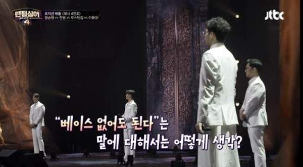 JTBC 오디션 <팬텀싱어4>가 첫 번째 라운드로 가져온 포지션 배틀은 같은 포지션, 즉 테너는 테너끼리, 뮤지컬은 뮤지컬끼리, 바리톤은 바리톤끼리, 함께 노래를 해 그 포지션에서 최고의 싱어를 뽑는 방식으로 치러졌다. 지금껏 <팬텀싱어>에서 단 한 번도 시도되지 않은 미션이었는데, 그 이유는 당연하다. 여러 성부를 가진 조합이어야 더 완벽한 하모니를 낼 수 있기 마련이기 때문이다. 즉 같은 성부로만 구성되면 화음과 베리에이션을 만들어내기가 쉽지 않다.