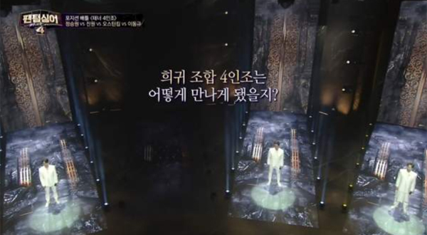 함께 무대를 꾸며야 하지만 이것은 또한 그 중 최강의 테너를 뽑는 대결이기 때문에 한 사람의 키에 맞춰주면 한 사람은 희생해야 하는 상황에 놓일 수 있었다. 흥미롭게도 가장 형(?)인 이동규가 자신이 희생하겠다고 하자 다른 이들도 서로 희생하겠다고 나서는 상황 속에서 오스틴킴이 방법을 냈다. 중간에 전조를 넣는 것이었다. 그러면 테너로 시작하다가 전조를 통해 자연스럽게 카운터테너의 음역대로 올려 네 명의 목소리를 낼 수 있을 거라는 것.