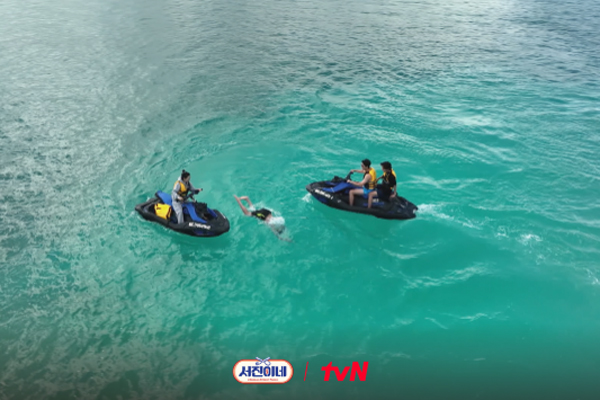 정신없이 돌아가는 분식집 ‘서진이네’지만, 사실 이 멕시코의 바칼라르 호수는 아름답기 그지없는 관광지다. 그래서 지친 직원들이 재충전할 수 있도록 이서진이 반나절의 여가시간을 제공하자 전혀 다른 풍경들이 펼쳐진다. 집 앞에서 제트스키를 타고 호수를 질주하고 에메랄드빛 호수에 뛰어드는 광경. 하얗게 불태울 정도로 열심히 일하고, 또 언제 그랬냐는 듯 호수에서 노는 완벽한 워라밸이 <서진이네>에는 일상처럼 펼쳐진다.