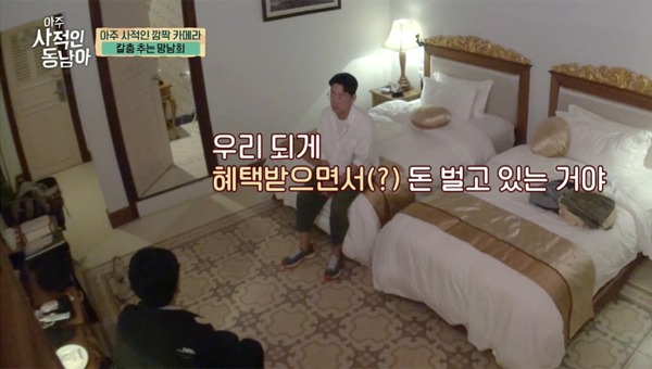 첫 번째 캄보디아 여행에서 나온 한 장면이다. ‘연기자’들의 ‘몰카’에 당하던 김도현은 그 사실을 전혀 모른 채 “우리 되게 혜택받으면서 돈 벌고 있는 거야.”라고 후배 김남희에게 진지하게 조언하며 타일렀다. 이 말이 굉장히 순수하면서도 신선하게 다가왔다. 그간 여행예능을 거쳐 간 수많은 출연자들은 힘들다거나 즐겁다고만 했지, 감사하게 돈을 번다는 말은 하지 않았다. 쉽게 듣지 못한 진심이다. 시청자의 인식과 출연자의 인식이 얼마나 가까이 자리하고 있는지 확인할 수 있는 진정성이 드러나 순간이었다.