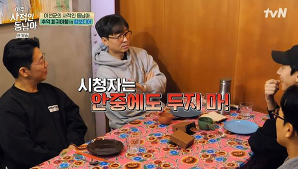 여정의 막바지에 접어든 tvN 예능 <아주 사적인 동남아>의 시작은 쏟아지는 여행예능 속에서 단연 신선했다. 여행을 떠나는 이유와 멤버 구성이 말 그대로, 무척이나 사사롭다. 첫 만남 자리에서 ‘시청자 눈치는 아예 보지 말자’는 장항준 감독의 선언은 일정 부분 현실이 된다. 선한 영향력이든, 성장서사든, 한류 전파, 힐링, 정보 전달 등등 여행의 당위를 시청자들과 공유하고 공감을 사기 위해 노력하는 여타 여행예능과 달리 여행지 선정부터 그야말로 사적이다. 19년 전 무명의 신인 시절 촬영했던 영화 <알포인트>의 촬영 장소를 다시 가보고 싶다는 이선균의 바람에 따라 젊은 시절 그의 파편화된 기억 속으로 날아간다.