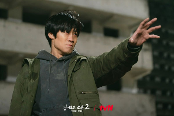 결국 문제는 다시 스토리로 귀결된다. 액션물이 가진 서사의 문제의식은 어떤 의미에서는 주인공만큼 악역에게서 찾아질 수 있다. 악역의 탄생은 그 사회가 가진 부조리나 부정을 의미하기 때문이다. 시즌1에서 최강 빌런으로 등장했던 완전체 악귀 지청신(이홍내)이나 신명휘(최광일) 같은 악역은 그래서 그 밑에 현실적인 사회의 부조리나 폭력이 담겨있다. 어려서 버려져 보육원에서 학대를 받으며 자라온 지청신이 그렇고, 시장이지만 권력을 유지하고 얻기 위해 수단과 방법을 가리지 않는 신명휘가 그렇다.
