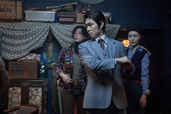 김지운 감독의 영화 <거미집>은 이런 시기에 나온 영화에 대한 영화라는 점에서 눈길을 끈다. 작품은 새로운 결말에 대한 영감이 계속 떠올라 그것만 바꾸면 걸작이 탄생할 거라는 예감을 갖게 된 김열 감독(송강호)이 이틀간의 추가촬영을 하며 벌어지는 소동을 그리고 있다. 하지만 김 감독의 이 추가촬영은 결코 만만치 않다. 제작자인 백 회장(장영남)의 반대를 설득해야 하고 모든 게 검열 당하던 1970년대 수정대본 또한 검열 담당자들의 심의와 감시를 받아야 한다. 게다가 촬영이 모두 끝난 걸로 알고 있는 배우들을 다시 불러 모아야 한다. 무엇보다 이런 리스크를 감수하고 추가촬영을 감행하는 김 감독 스스로도 영화가 걸작이 될 거라는 확신을 갖지 못한다.