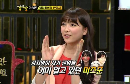 “일본에서 방송 출연을 마치고 엘리베이터에 탔는데 아라시 멤버 마츠모토 준이 혼자 타고 있었대요. 니콜 언니가 멤버 중에 지영이가 마츠모토 준을 제일 좋아한다고 얘기했더니 이미 알고 계신다고 하더래요. 그런데 제가 아쉽게도 거기에 없었어요. 어린 게 죄지. 일본은 미성년자는 9시 넘으면 일을 할 수 없거든요. 그 방송이 11시까지였고 그래서 저는 9시에 집에 돌아갔던 거예요. 너무 아쉬워요!”