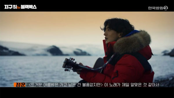그래도 추웠을 텐데, 굳이 최정훈이 외투를 벗고 노래를 한 건 여러 가지 이유가 있었을 터다. 가수로서의 예의 같은 것이기도 하면서, 대자연 앞에 좀 더 자신을 있는 그대로 세워두려는 마음이 있었을 것이고, 모든 걸 주고도 웃을 수 있는 자연처럼 자신 또한 추위 앞에서도 노래 부르는 모습으로 남길 바랐을 것이다. 하지만 무엇보다 중요한 이유는 그것이 남극의 기후를 직관적으로 보여준다는 사실이다. 외투를 벗고 노래를 해도 될 정도로 올라가버린 기후 변화가 그 짧은 영상에 담기지 않았던가.
