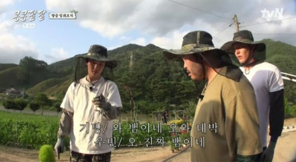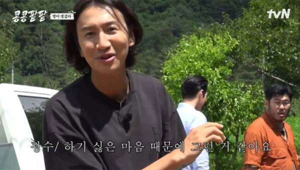 하지만, 지금까지 나영석 사단의 예능과 가장 이질적이다. 출연진부터 왠지 조인성이나 유재석이 있어야 할 것 같다. 이광수, 김기방, 김우빈, 도경수 모두 나영석 사단과는 처음 함께하는 조합이다. 농촌에서 연예인들의 농사라는 게 <삼시세끼>에서 자주 본 그림이긴 한데 나영석 사단의 인장이라 할 수 있는 특유의 동화적 공간을 구현하던 장치와 디테일을 시원하게 걷어냈다. 같은 시골인데 제작진이 마련한 매력적인 공간 인테리어 및 미식 콘텐츠가 없다. 특별한 꾸밈없는 실제 민박집과 농막에서 쉬고 편의점 음식을 먹는다.