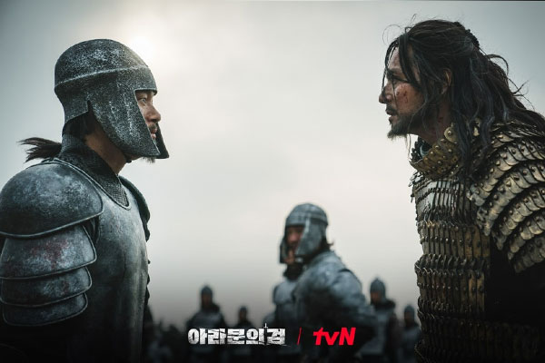 <아라문의 검>에 등장하는 탄야와 태알하가 벌이는 이런 논쟁은 김영현, 박상연 작가가 그려온 사극들에서 익숙하게 등장하는 장면 중 하나다. <선덕여왕>에서 덕만(이요원)과 미실(고현정)의 논쟁이 그것이고, <뿌리 깊은 나무>에서 이도(한석규)와 정기준(윤제문)의 논쟁이 그것이다. 사극을 통해 논쟁적인 이슈들의 대결을 줄곧 끄집어내온 김영현, 박상연 작가는 이번 <아라문의 검>에서도 이러한 서로 다른 가치관이 대결하는 장면을 끄집어낸다.