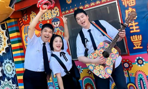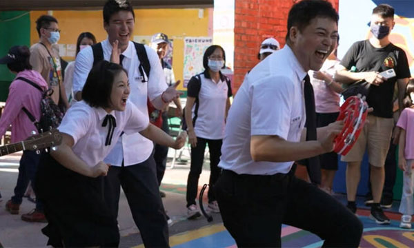 그런데 이번 제3회 팜유 세미나가 흥미로웠던 건, 베트남 달랏과 목포와 비교해 세계관이 확장되고 이야깃거리도 풍부해졌다는 점이다. 물론 이튿날에도 아침부터 대만식 족발을 먹는 팜유즈 특유의 만끽하는 먹방이 벌어졌지만, 대만의 국민드라마 <상견니> 세계관을 가져와 교복 차림을 한 채 스쿠터를 타고 대만의 거리를 달리는 풍경이 연출됐다. 또 재개발로 철거될 뻔 했던 마을에 한 할아버지가 벽화를 그려 관광지가 된 무지개마을을 찾아, 알록달록한 벽화들이 그려진 골목을 돌아다니는 감성이 더해졌다.