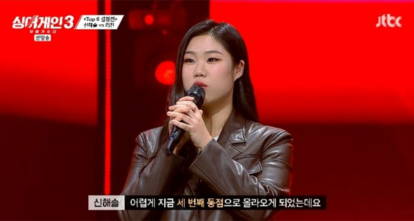 캠핑장 가수로 주목받은 신해솔은 이제 겨우 19살이라는 게 믿기지 않을 정도의 소울풀하고 저음과 고음을 자유자재로 넘나드는 가창실력에 예사롭지 않은 퍼포먼스까지 더해진 무대매너로 심사위원들의 마음을 사로잡았다. 윤종신이 “물건 하나 나왔다”고 말했던 것처럼 마치 외국가수를 보는 듯한 폭발력 넘치는 가창력이 압권이다.