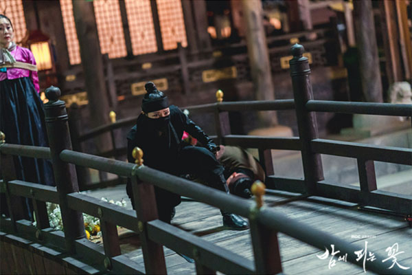 <밤에 피는 꽃>은 다소 무거운 선왕의 죽음과 관련된 사건들(조여화와 박수호의 가족도 연관된)을 밑그림으로 깔아놓는 반면, 매회의 그 흐름은 ‘활극’의 경쾌함과 유쾌함으로 톤을 잡았고 개성 넘치는 캐릭터들의 코믹한 연기들을 채워넣어 상상으로 구축된 세계에 생명력을 불어넣었다. 조여화 역할의 이하늬는 바로 이 코믹하면서도 시원시원한 활극이 펼쳐지고 또 박수호와의 달달한 멜로를 그려가면서도 진실에 다가가는 무게감도 균형있게 가져가는 연기를 펼쳤다. 그가 가진 색깔이 <밤에 피는 꽃>이라는 사극의 색 그 자체였다고 해도 과언이 아니다.