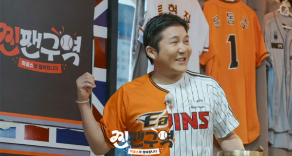 그러다보니 넷플릭스에서 제작한 영국 다큐멘터리 ‘죽어도 선덜랜드’처럼 특정 팀 팬을 코어 로 삼는 예능 기획이 새롭게 느껴진다. ENA와 채널십오야에서 공개하는 신규 예능 ‘찐팬구역’은 만년 하위팀인 한화 이글스를 ‘그럼에도’ 응원하는 콘셉트로 기획된, 선수가 아닌 팬을 주인공으로 하는 국내 최초의 스포츠예능이다. KBO와 생태계를 공유하며 확장하고 있는 JTBC ‘최강야구’의 세계관을 참고하고, 일정을 나름대로 공유하려는 선순환의 노림수도 흥미롭다. 일주일 중 유일하게 프로야구 경기가 없는 월요일에 방송하는데, 차태현의 말처럼 저녁에 ‘찐팬구역’을 보고 늦은 밤 ‘최강야구’를 즐기면 된다. 또한, 폐지 공약이 걸려 있는 ‘최강야구’와 마찬가지로 ‘찐팬구역’도 한화 이글스가 5위 안에 들지 않으면 자동 폐지된다. 한화의 시즌 성적과 연동된 운명 공동체다.